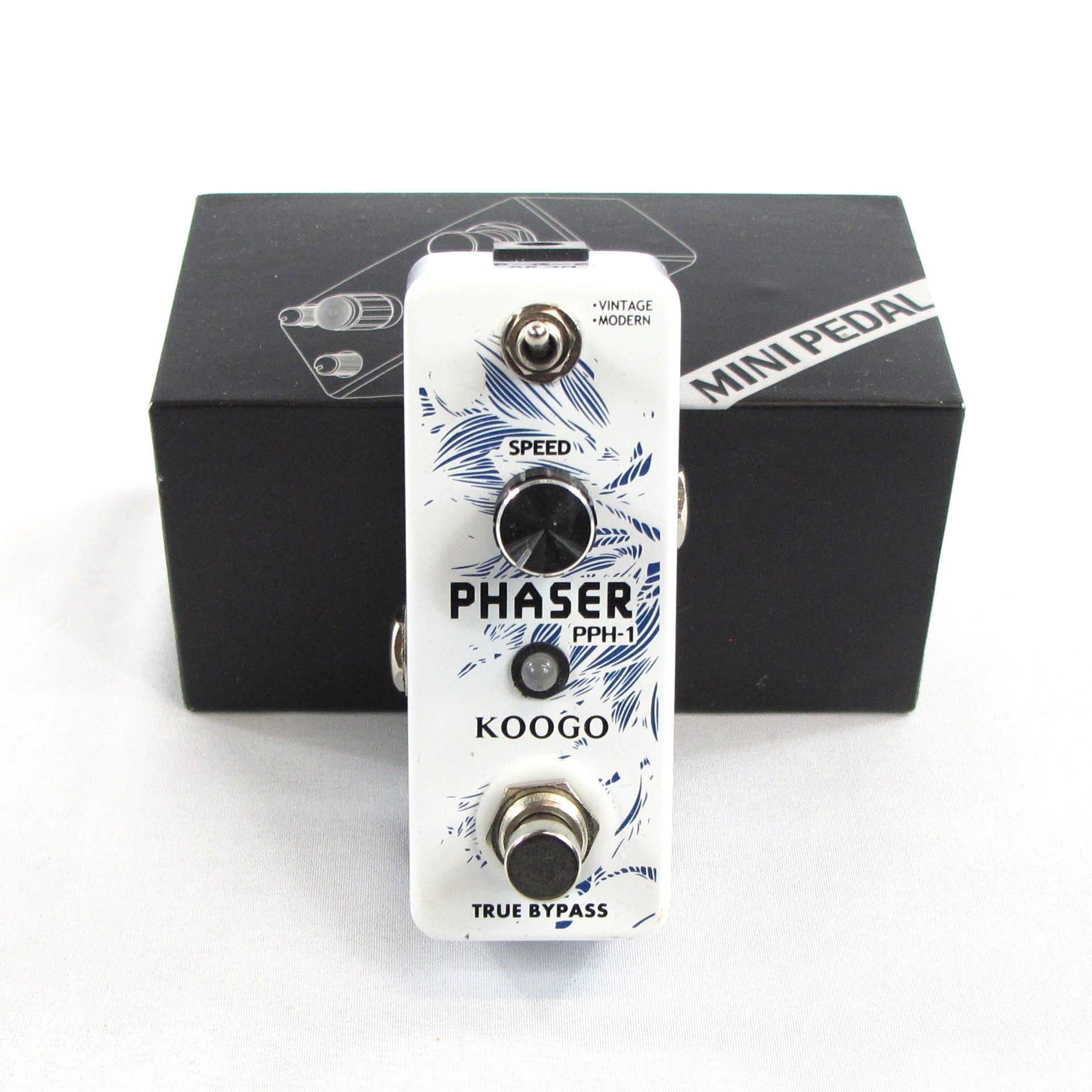 The Koogo PPH-1 Phaser features an all-analog phase effect, plump and warm sound. It carries a Speed knob and a toggle that lets you switch between Modern and Vintage modes. The Modern mode allows you to gain more depth to contemporary plump phaser effect, while Vintage takes you back to the 1970s with classic phaser effect. The Koogo Phaser is housed in a sturdy zinc alloy enclosure. It includes true bypass for transparent tone and LED indicator that tells you the working state.