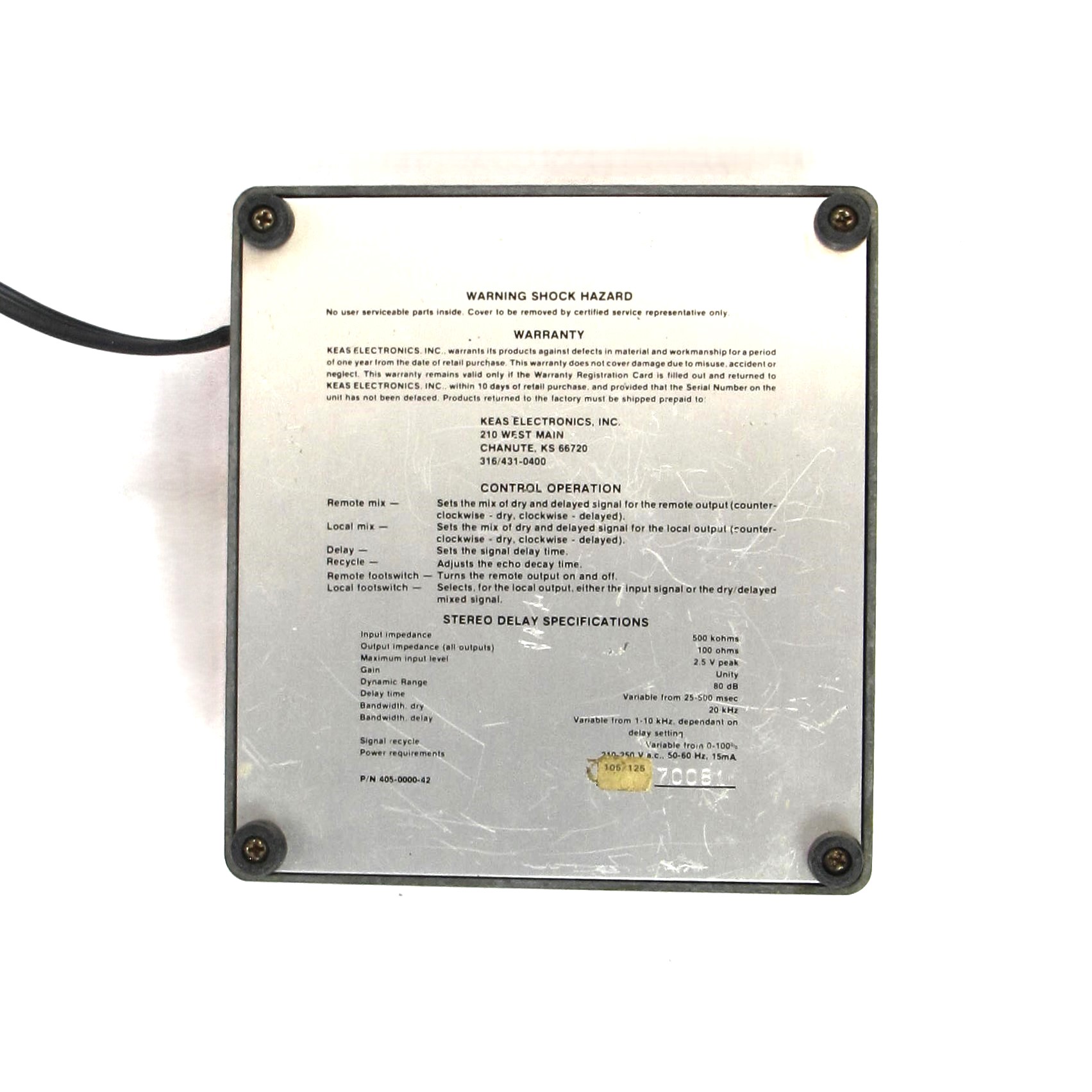 Judging from the circuits, we find this VINTAGE Ross R80 Stereo Delay manufactured in 1980. This highly sought-after analog pedal produces a warm, rich delay distinguishing it from digital delay pedals. Features two outputs (remote and local) allowing it to run in full stereo and a hard wired power cord.